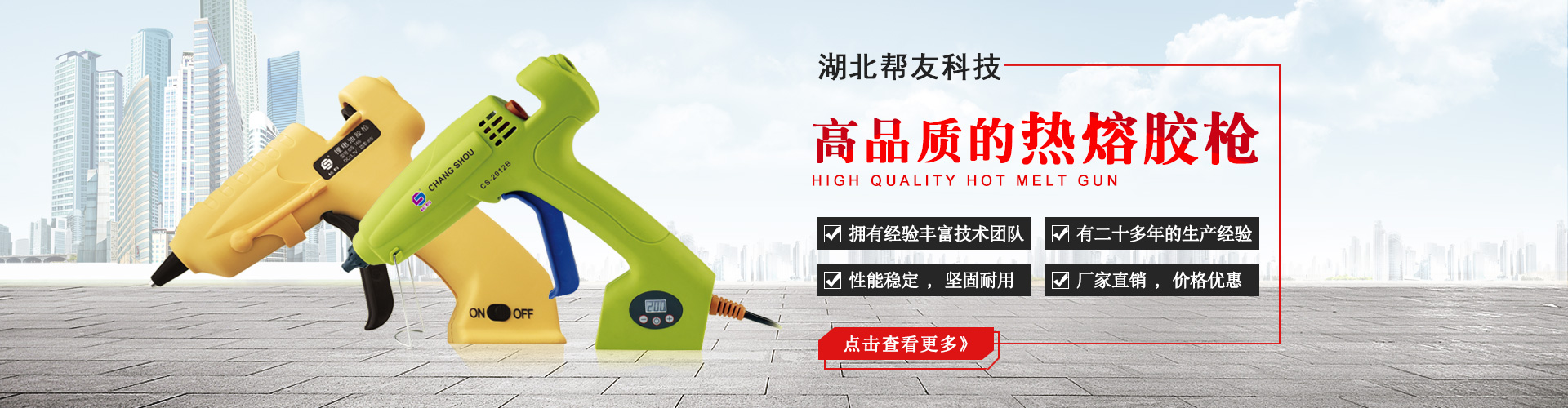 本廠 始建于1994年, 擁有塑膠件注塑生產加工、發熱芯生產線、成品裝配線,是從事電熱工具:熱風槍、熱熔膠槍、塑膠焊槍等電器產品開發、生產的專業廠家,擁有二十多年的生產經驗,其中工業用的調溫、恒溫、數字顯示、數字控制溫度的熱風槍、熱熔膠槍已處于國際地位,并獲得多項專利。2000年榮獲《質量監督檢測中心合格產品》,2002年經德國CE認證中心認證,榮獲CE證書。2003年榮 獲國家輕工部頒發的《中國名優產品》證書,并...